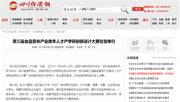 第三届食品营养产业青年人才产学研创新设计大赛在蓉举行