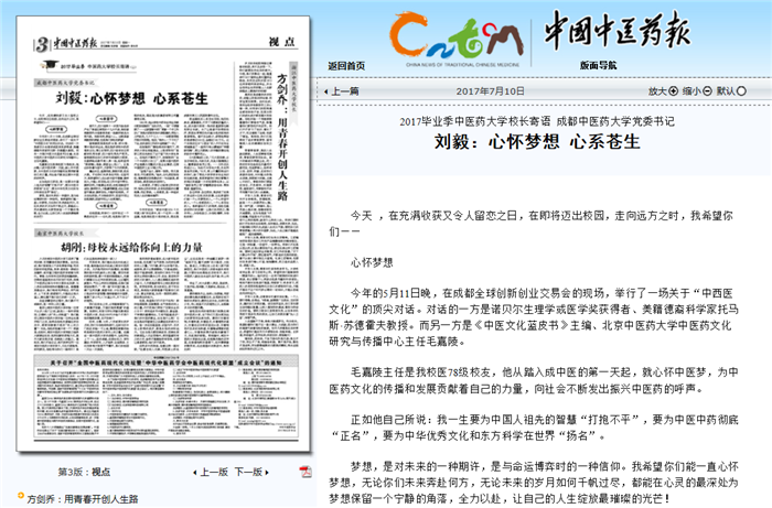 2017毕业季中医药大学校长寄语 pp电子官方网站党委书记