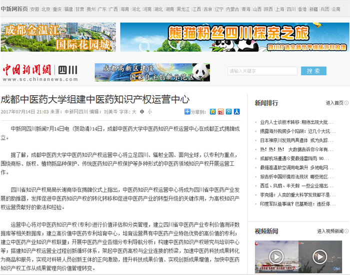 四川省知识产权局局长谢商华在揭牌仪式上指出,中医药知识产权运营中心将成为四川省中医药产业发展的助推器,发挥促进中医药知识产权的转化转移和促进中医药产业的转型升级的关键作用,为高校知识产权运营贡献好的做法和经验。