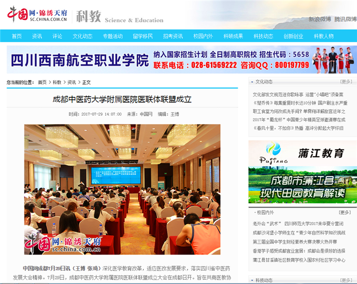 中国网成都7月29日讯(王博 张琦)深化医学教育改革,适应医改发展要求,落实四川省中医药发展大会精神。7月29日,pp电子官方网站附属医院医联体联盟成立大会在成都召开。旨在共商医教协同,创新中医医联体联盟新模式。