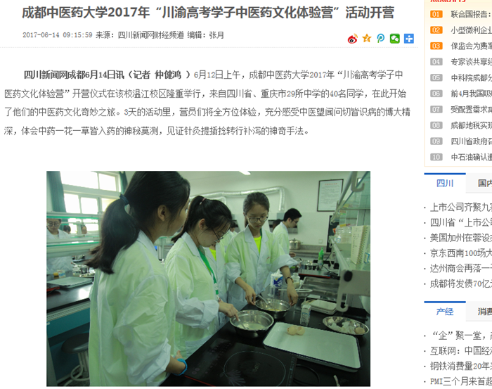 pp电子官方网站2017年“川渝高考学子中医药文化体验营”活动开营