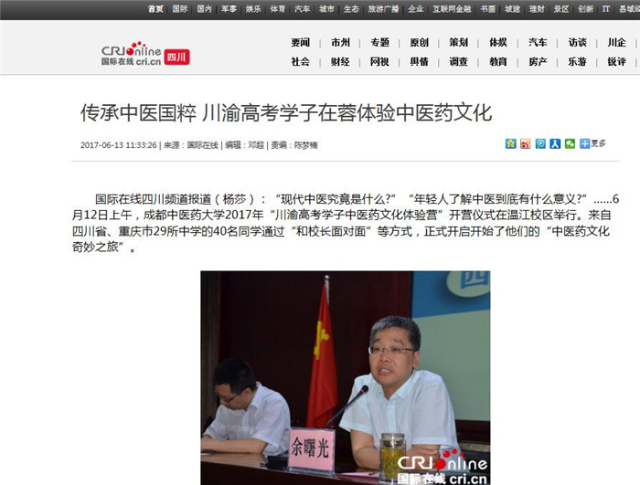 国际在线四川频道报道(杨莎):“现代中医究竟是什么?”“年轻人了解中医到底有什么意义?”……6月12日上午,pp电子官方网站2017年“川渝高考学子中医药文化体验营”开营仪式在温江校区举行。来自四川省、重庆市29所中学的40名同学通过“和校长面对面”等方式,正式开启开始了他们的“中医药文化奇妙之旅”。