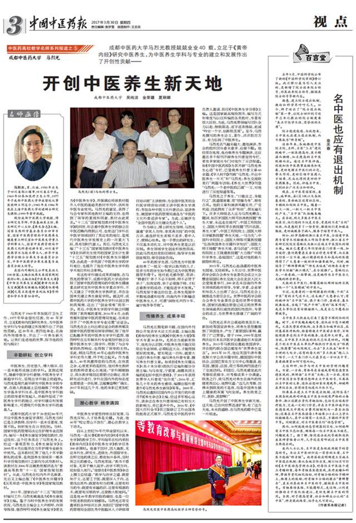 马烈光开创了中医养生学新天地,这天地,已在向世界迅速扩展;有了这方天地,未来的道路,在马烈光的眼中已是一片坦途。(吴纯洁 金荣疆 夏丽娜)