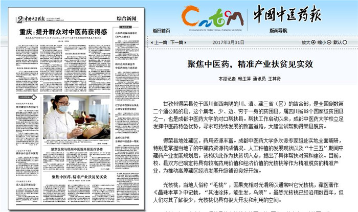 得荣县地处藏区,药用资源丰富。pp电子官方网站多次派专家组赴实地全面调研,特别是掌握当地了的中藏药资源构成情况、人工种植的发展现状以及“十三五”期间中藏药产业发展规划后,该校以此作为扶贫切入点,提出了具体帮扶对策和建议。目前,校、县双方已确定将具有较高药用价值和经济价值的光核桃等作为精准脱贫的精准产业,为推动高原藏区经济发展升级铺设良好开端。