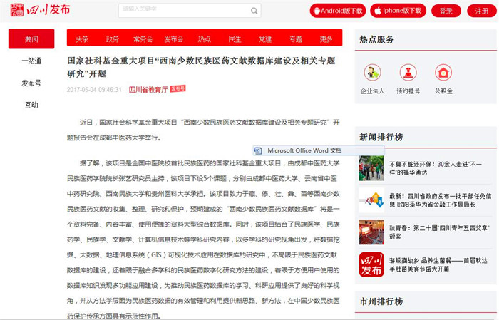据了解,该项目是全国中医院校首批民族医药的国家社科基金重大项目,由pp电子官方网站民族医药学院院长张艺研究员主持,该项目下设5个课题,分别由pp电子官方网站、云南省中医中药研究院、西南民族大学和贵州医科大学承担。该项目致力于藏、傣、壮、彝、苗等西南少数民族医药文献的收集、整理、研究和保护,预期建成的“西南少数民族医药文献数据库”将是一个资料完备、内容丰富、使用便捷的资料大型综合数据库。同时,该项目结合了民族医学、民族药学、民族学、文献学、计算机信息技术等学科研究内容,以多学科的研究视角出发,将数据挖掘、大数据、地理信息系统(GIS)可视化技术应用在数据库的研究中,不局限于民族医药文献数据库的建设,还着眼于融合多学科的民族医药数字化研究方法的建设,着眼于方便用户使用的数据库知识发现多功能应用建设,为推动民族医药数据库的学习、科研应用提供了良好的科学视角,并从方法学层面为民族医药数据的有效管理和利用提供新思路、新方法,在中国少数民族医药保护传承方面具有示范性作用。