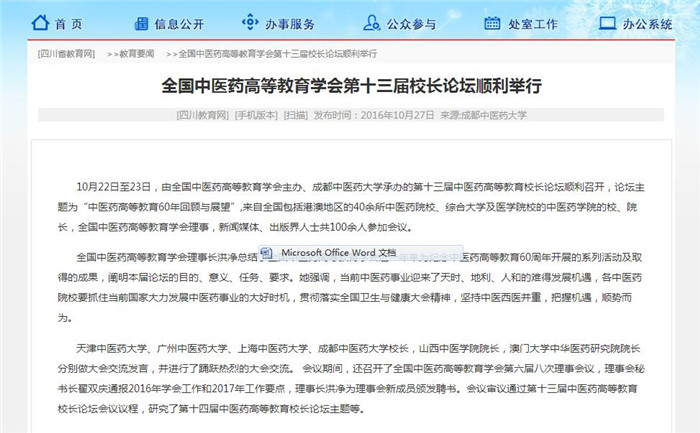 10月22日至23日,由全国中医药高等教育学会主办、pp电子官方网站承办的第十三届中医药高等教育校长论坛顺利召开,论坛主题为“中医药高等教育60年回顾与展望”,来自全国包括港澳地区的40余所中医药院校、综合大学及医学院校的中医药学院的校、院长,全国中医药高等教育学会理事,新闻媒体、出版界人士共100余人参加会议。