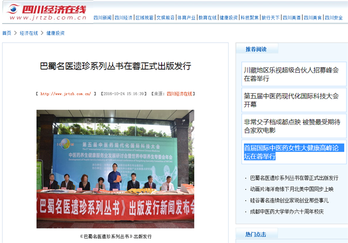 四川经济在线成都10月24日讯 10月24日,《巴蜀名医遗珍系列丛书》在成都召开新闻发布会,宣告正式出版发行。据悉,此次出版发行的该丛书共21部,整套全部完成将超百部。