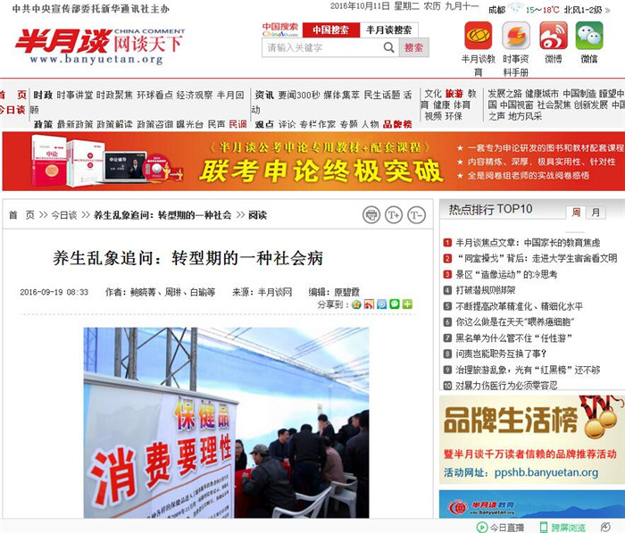 青海省社会科学院研究员唐萍说,不少畅销的养生书籍、微信公众号是以新、奇、特的观点吸引受众,而忽视了科学性。唐萍建议,宣传健康知识要将科学性放在第一位,杜绝虚假养生信息传播。