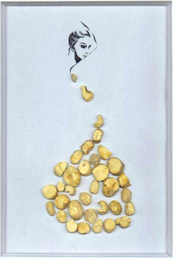 薏苡仁不仅做成了一条不规则裙摆的露肩美裙,还顺带制作了一顶洋气的礼帽,我服!