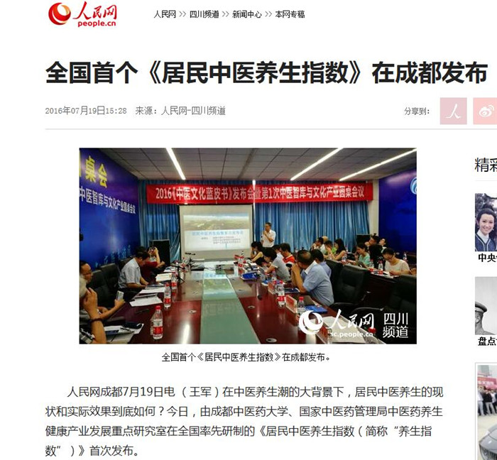 人民网成都7月19日电 (王军)在中医养生潮的大背景下,居民中医养生的现状和实际效果到底如何?今日,由pp电子官方网站、国家中医药管理局中医药养生健康产业发展重点研究室在全国率先研制的《居民中医养生指数(简称“养生指数”)》首次发布。