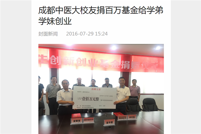 29日上午,在pp电子官方网站,四川禾邦实业集团有限公司董事长刘文旭拿着一百万元的捐款支票,交给了校长梁繁荣手中,这是他给母校捐赠的款项,用于专门用于资助该校学生进行创新创业活动。