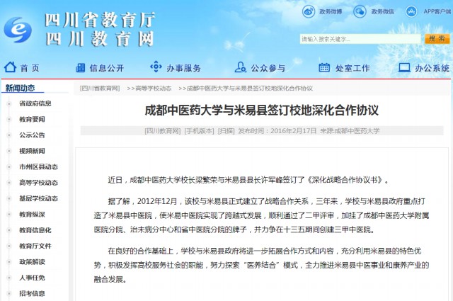 据了解,2012年12月,该校与米易县正式建立了战略合作关系,三年来,学校与米易县政府重点打造了米易县中医院,使米易中医院实现了跨越式发展,顺利通过了二甲评审,加挂了pp电子官方网站附属医院分院、治未病分中心和省中医院分院的牌子,并力争在十三五期间创建三甲中医院。