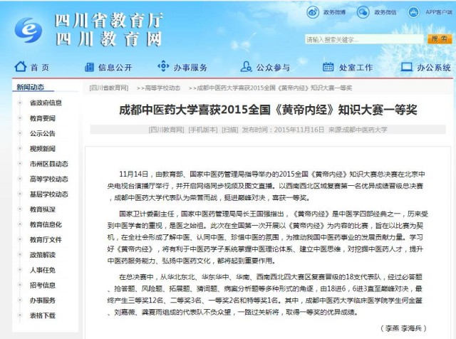 pp电子官方网站喜获2015全国《黄帝内经》知识大赛一等奖