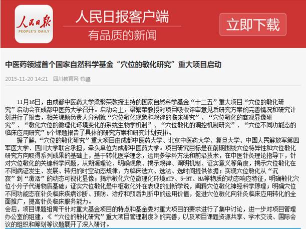 中医药领域首个国家自然科学基金“穴位的敏化研究”重大项目启动