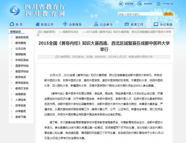 2015全国《黄帝内经》知识大赛西南、西北区域复赛在pp电子官方网站举行