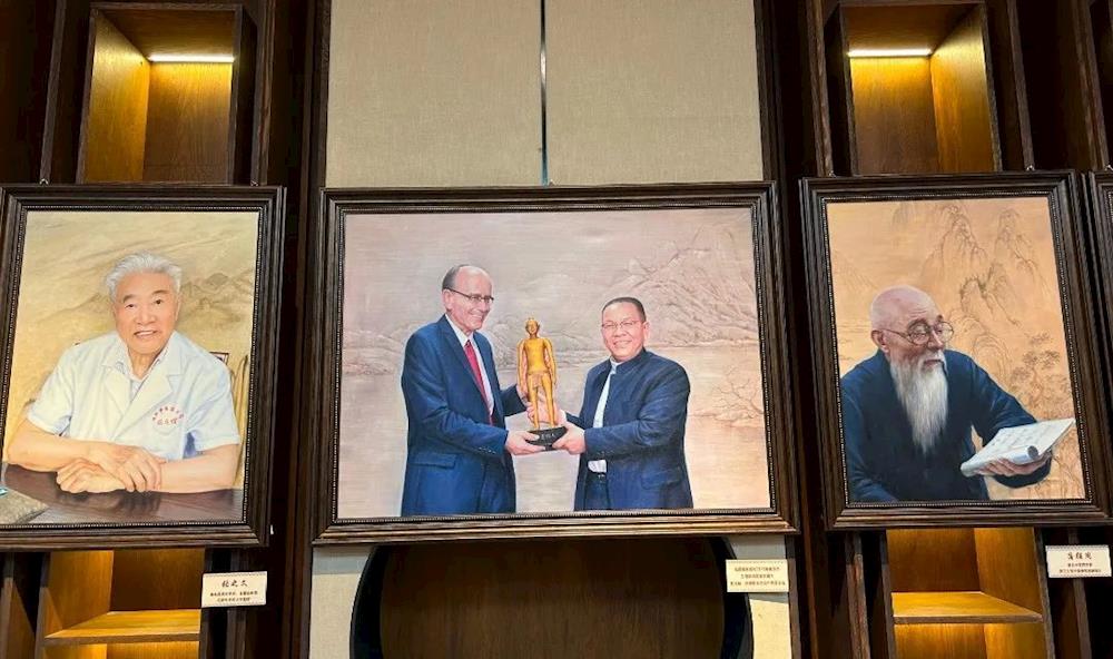 其中,吴棹仙向毛主席敬献的《子午流注图》油画像是第一次公开展览;依据模糊照片创作的蒲辅周画像,也是二十世纪最具影响力的中医临床大家蒲辅周画像第一次公开展览;毛嘉陵与苏德霍夫对话油画像折射出成中医校友与诺奖得主成功的对话。
