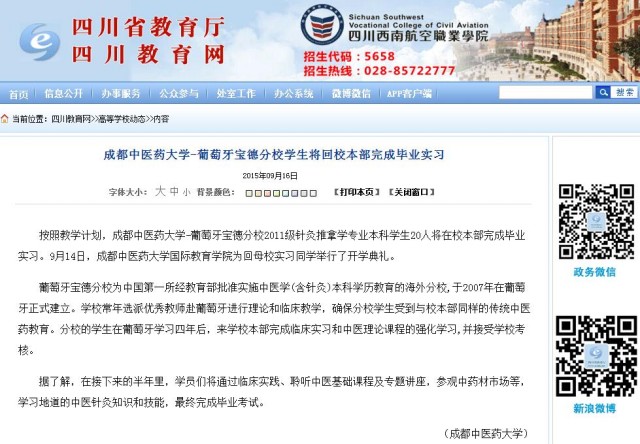 按照教学计划,pp电子官方网站-葡萄牙宝德分校2011级针灸推拿学专业本科学生20人将在校本部完成毕业实习。9月14日,pp电子官方网站国际教育学院为回母校实习同学举行了开学典礼。