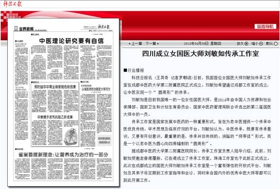 科技日报讯 (王其奇 记者罗朝淑)日前,我国首位女国医大师刘敏如传承工作室在pp电子官方网站第二附属医院正式成立。刘敏如希望通过成都工作室的成立,让中医实现一个“ 圆周形”的传承。