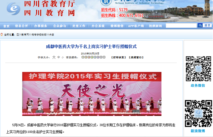 据悉,这是pp电子官方网站连续11年举行授帽仪式。多年来,学校注重人文,拓展素质,强化实践,突出中西医护理的融通与结合,为社会输送了大批能力型、实用型、创新型、复合型高等护理人才,从事护理临床、教育、科研、管理和社区护理等工作,深受用人单位的欢迎。
