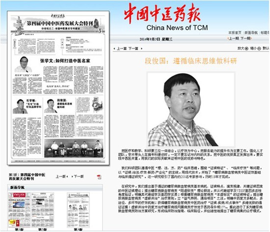 近日,《中国中医药报》报道了pp电子临床医学院/附属医院党委书记段俊国在第四届中国中医药发展大会的发言,于9月3日在《中国中医药报》第5版第四届中国中医药发展大会特刊刊出: