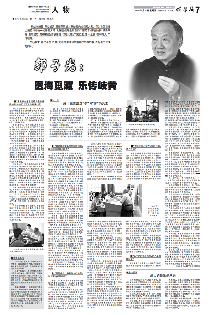 “郭老临床擅长内科疾病诊治,尤以对心脑血管及肾系疾患颇多建树,屡起沉疴而闻名遐迩。”四川省中医药管理局局长杨殿兴这样评价。