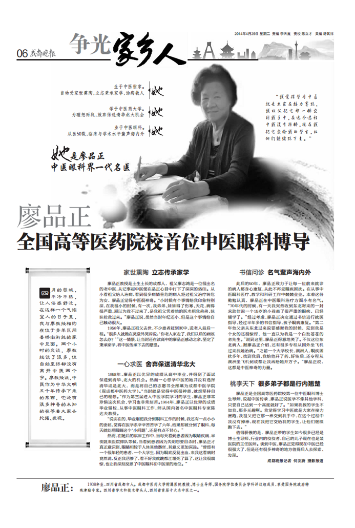 廖品正:全国高等医药院校首位中医眼科博导