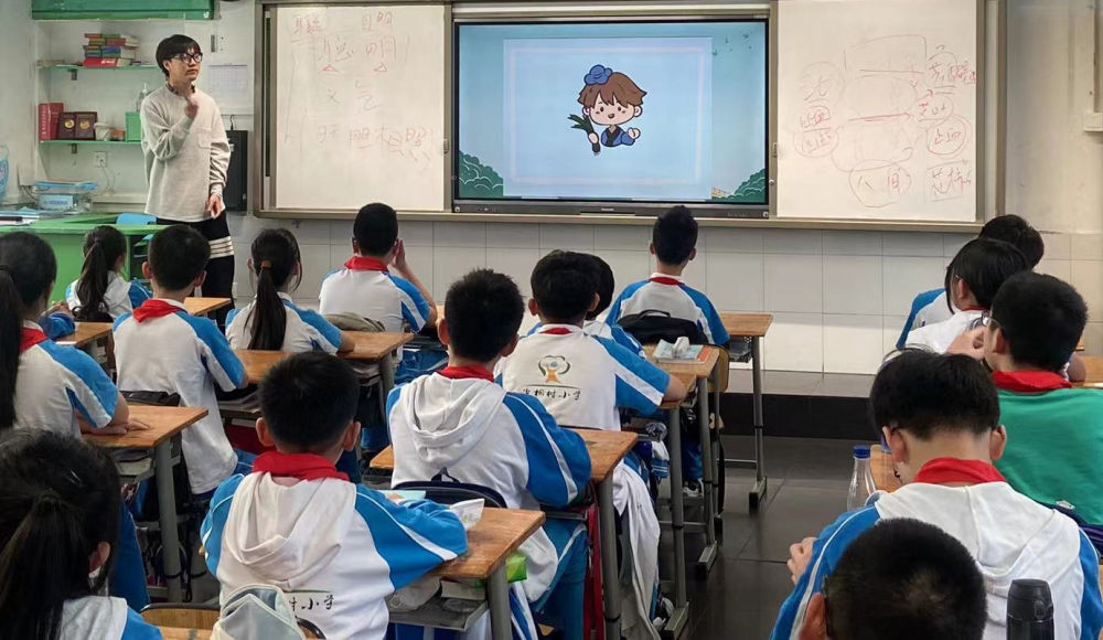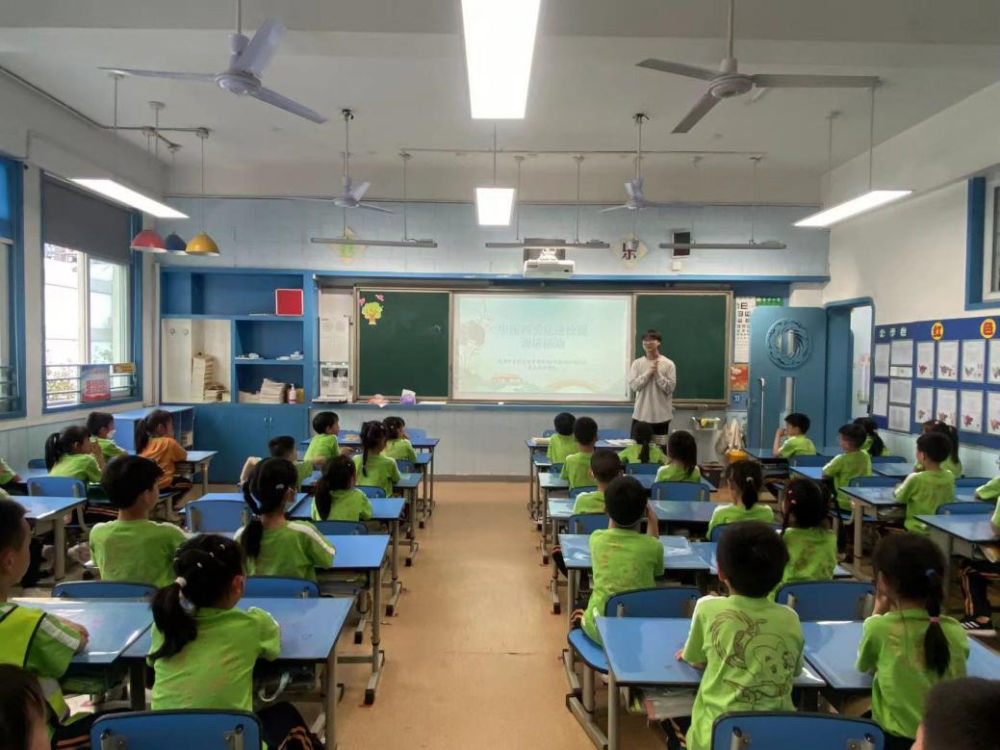 课题组在泡桐树小学播放《药二郎科普短视频》