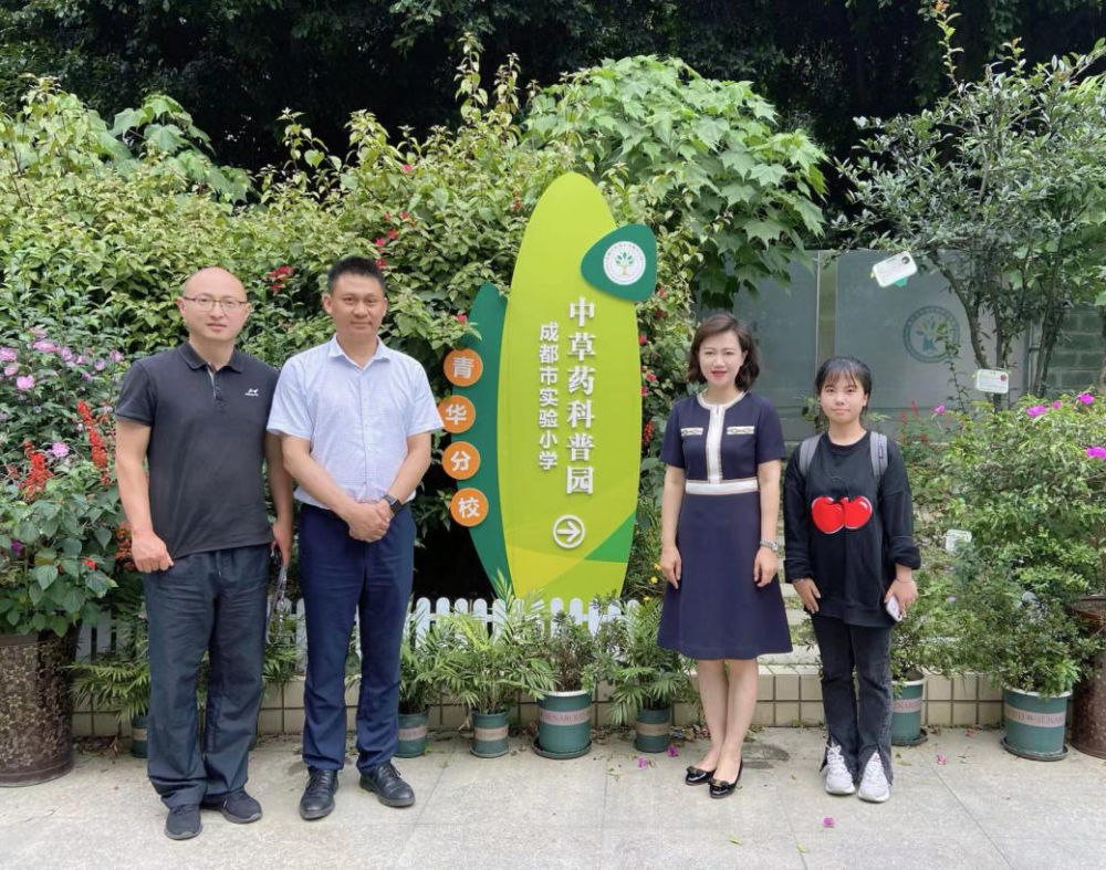 课题组在成都市实验小学青华分校考察中草药科普园
