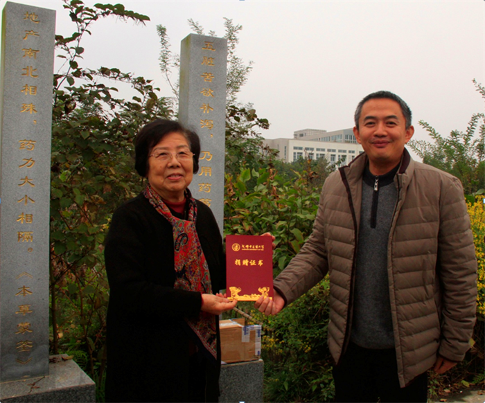 11月11日,著名中药学专家、pp电子首届国家级教学名师万德光先生向学校无偿捐赠了四株龙脑樟幼苗。捐赠仪式在学校药用植物园举行,药学院党委书记冯全生、副书记胡媛、中药资源与鉴定系主任严铸云、药用植物园负责人马云桐等学院教师以及2016级“凌一揆”班学生参加了捐赠仪式。