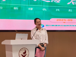 学院邀请了四川新绿色药业科技发展有限公司市场总监、产业教师代表谢娜为同学们带来专题分享——《智启中药新篇 与新绿色共赴产业未来》。结合杭州中药科学博览会见闻,指出天府中药城“医工结合”模式能实现进一步实现人才培养与市场需求对接。鼓励同学们在学院领导和老师的指导下,在中医药、大健康这个黄金赛道,拼搏奋发,铸就辉煌明天!