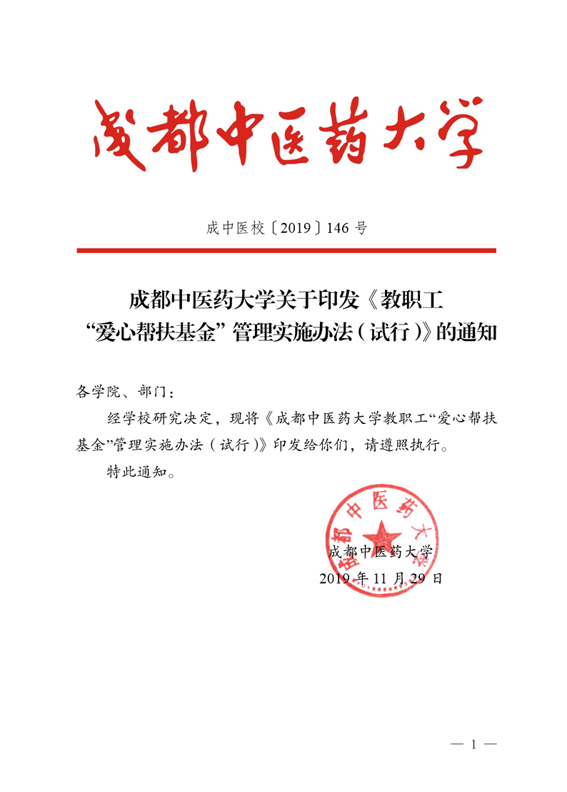 关于教职工申请2019年度“爱心帮扶基金”的通知