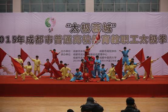 12月6日,“太极蓉城”2015年成都市普通高校体育教职工太极拳比赛在pp电子体育馆举行。来至成都市的四川大学、电子科技大学、西南交通大学、西南财经大学、中国民航飞行学院、四川师范大学、西华大学、成都理工大学、四川音乐学院、成都师范学院、pp电子官方网站和西南科技大学共12所高校的447名体育教职工参加了本次比赛。