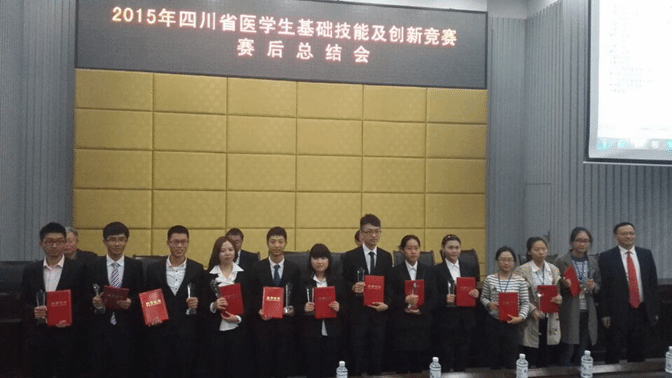 2015年11月6日—8日,由四川省教育厅主办,四川医科大学承办的“四川省医学生基础技能及创新竞赛”在泸州举行,来自全省各医学院校或综合院校医学院的10家单位共20支队伍参加了竞赛。pp电子第二临床医学院派出2支参赛队伍共6名选手参加竞赛。经过理论考试、基础实验技能、创新成果PPT展示等三个环节共一天半的激励角逐,pp电子学生以总成绩第五、第六的优秀表现,均获二等奖。