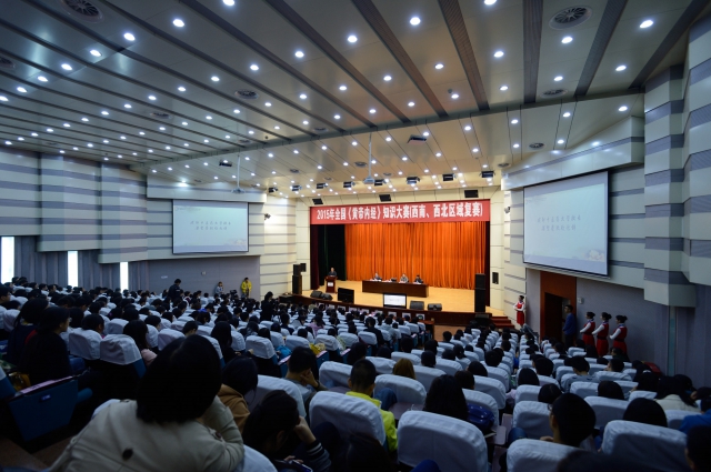 10月31日上午,2015全国《黄帝内经》知识大赛西南西北区域复赛开幕式在温江校区举行。学校校长梁繁荣,党委副书记、副校长沈涛,复赛仲裁专家组组长张新渝,教育部高等学校中医学教学指导委员会代表李增艳出席,来自pp电子官方网站、甘肃中医药大学、贵阳中医学院、贵阳中医学院时珍学院、宁夏医科大学、陕西中医药大学、四川医科大学、新疆医科大学、云南中医学院9个院校14支代表队师生近400人参加开幕式。