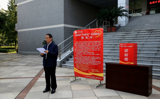 10月12日上午,学校在行政楼前举行“奉献一份爱心,点燃一盏希望”为主题的“扶贫日”公募活动,学校在家校领导和行政管理人员踊跃参与,校党委副书记、副校长沈涛主持公募活动。
