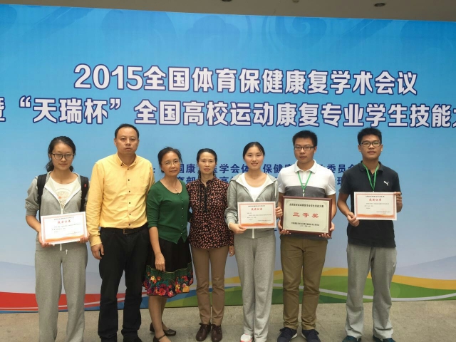 pp电子体育学院选派运动康复专业王春艳、胡贤瑞、庞博三名同学组成代表队,经过两天的激烈角逐获团体赛三等奖,胡贤瑞获个人赛三等奖,袁超群老师获指导教师奖。