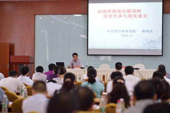 中共四川省委党校副校长、四川行政学院副院长裴泽庆教授以“加强思想政治建设的历史传承与现实意义”为题为pp电子领导干部读书班暨干部培训作专场辅导。裴教授从加强思想政治建设的历史传统、价值定位、基本特质、时空转换、现实挑战等方面深刻阐释了开展领导班子思想政治建设工的重要作用,并从本源视角、目的视角、内容视角与现实挑战等方面深入浅出地对“党要管党,从严治党”作了强调,对高校在发挥社会服务、立德树人等方面提出建设性意见。