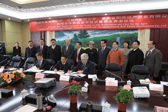 3月10日上午,英国布鲁克斯大学、pp电子官方网站、重庆金阳房地产开发有限公司战略合作备忘录签字仪式暨养生养老论坛在温江校区第三会议室举行。英国布鲁克斯大学公共保健学院院长Keith Grant Moultrie和Elizabeth Mary Craincross、PRP公司总裁Roger、四川投资发展促进局副局长易军、重庆金阳房地产开发有限公司总裁刘达平等莅临参加,学校党委书记马跃荣,校长梁繁荣,副校长安劬、余曙光、刘旭光,养生专家马烈光教授以及相关部门出席接待。安劬主持会议。