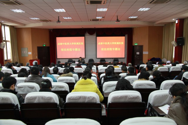 1月7日下午,临床医学院/附属医院依法治院专题会在十二桥校区召开。院领导班子、党委委员、纪委委员和各行政职能部门、党总支、系部、临床及医技科室负责人、科护士长、护士长等150余人参加会议。院长钟森做题为《坚持思想建院和制度治院相结合》的专题报告,院党委书记段俊国发表讲话,院党委副书记、纪委书记谭生奎主持会议。