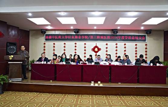 1月17日,针灸推拿学院/第三附属医院2014年度学科总结大会召开,学校校长、针灸推拿学科带头人梁繁荣作学科发展工作报告,副校长余曙光、刘旭光研究员出席大会。