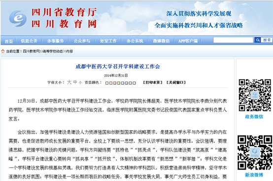 资料显示,十一五以来,pp电子官方网站坚持以国家重点学科建设为核心、省级重点学科建设为抓手,进一步突出学科特色,凝练学科方向,打造创新团队,构筑创新平台,提升整体水平,学科建设工作取得长足进展。目前学校拥有国家级一级重点学科一个,国家级二级重点学科三个;国家中医药管理局重点学科二十三个,四川省一级重点学科三个,四川省二级学科十八个,四川省重点学科建设项目三个,四川省医学重点学科四个,成都市医学重点学科两个,校级重点和特色学科十二个。