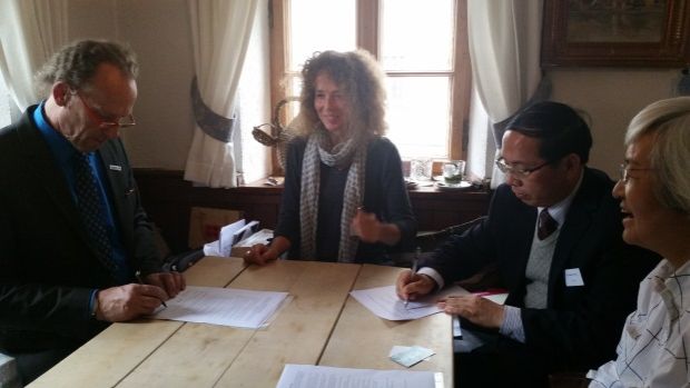 访德期间,梁繁荣还与德国传统针灸中医学会(AGTCM)主席Hellwig博士一行举行会谈,双方还就下一阶段在学术交流与培训、高层次中医药人才培养、专题论坛、科学与文化论坛、国际学术会议等多方面的合作达成协议,并签署了《中国pp电子官方网站与德国传统针灸中医学会合作备忘录》。