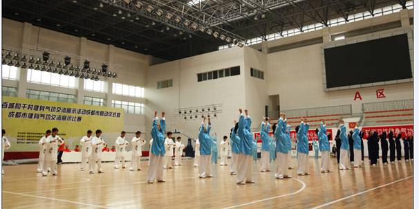 9月5日上午,由国家体育总局健身气功管理中心和成都市体育局主办、成都市武术跆拳道运动管理中心承办、成都市武术运动协会协办的“2014年全国开展百城和千村健身气功交流展示活动成都市启动仪式暨成都市健身气功交流展示比赛”在pp电子体育馆举行。来自成都市各区市县的31支代表队,近400名运动员分别参加了集体和个人易筋经、五禽戏、六字诀、八段锦、大舞五种功法的展示。