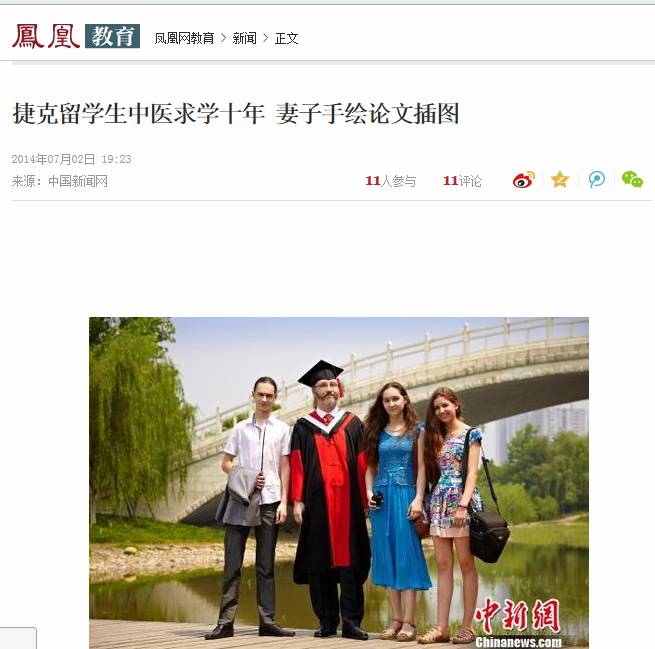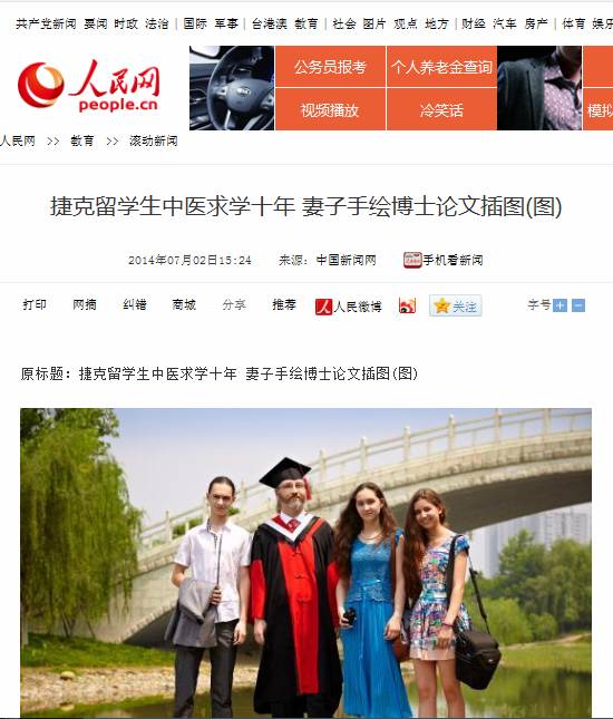7月2日,中国新闻网报道了pp电子2014届博士毕业生、捷克留学生孙洋不远千里举家来到中国求学,攻读针灸学博士的经历,孙洋导师、校长梁繁荣教授同时接受采访。新华网、人民网、凤凰报网等近百家网络媒体转载,其他转载近70次。以下是详细内容: