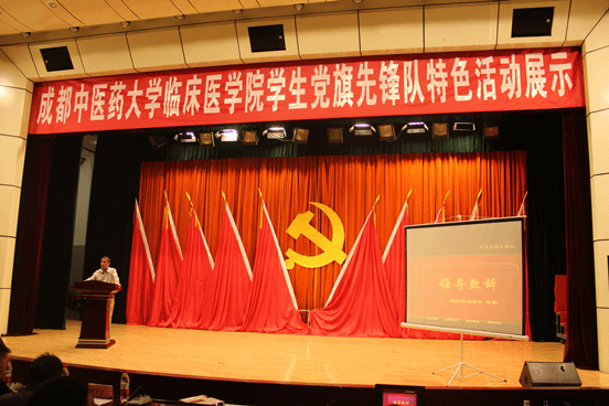 马克思主义学院党总支书记杨支才、临床医学院党委副书记谭生奎、党委副书记田理、校党委宣传部副部长罗晓文、学生处副处长/校团委书记佟枫、保卫处副处长杨永成、后勤处副处长杜靓以及附属医院/临床医学院党办、学生党总支、学工部相关负责同志及全院辅导员、各支部书记出席了展示会。学生党旗先锋队队员,学院各支部的学生党员、预备党员及入党积极分子代表近500人参加了展示会。