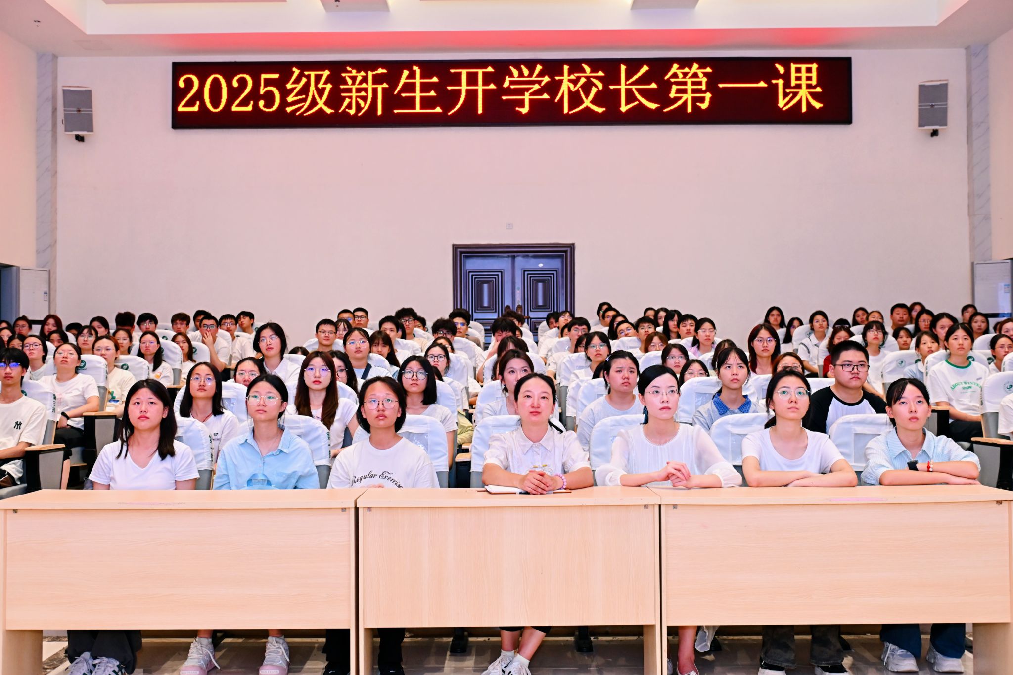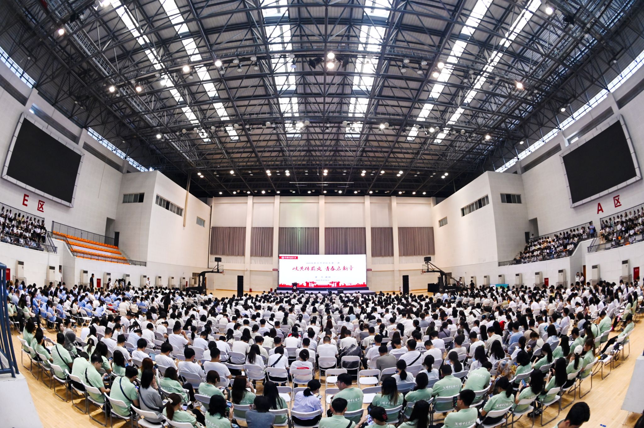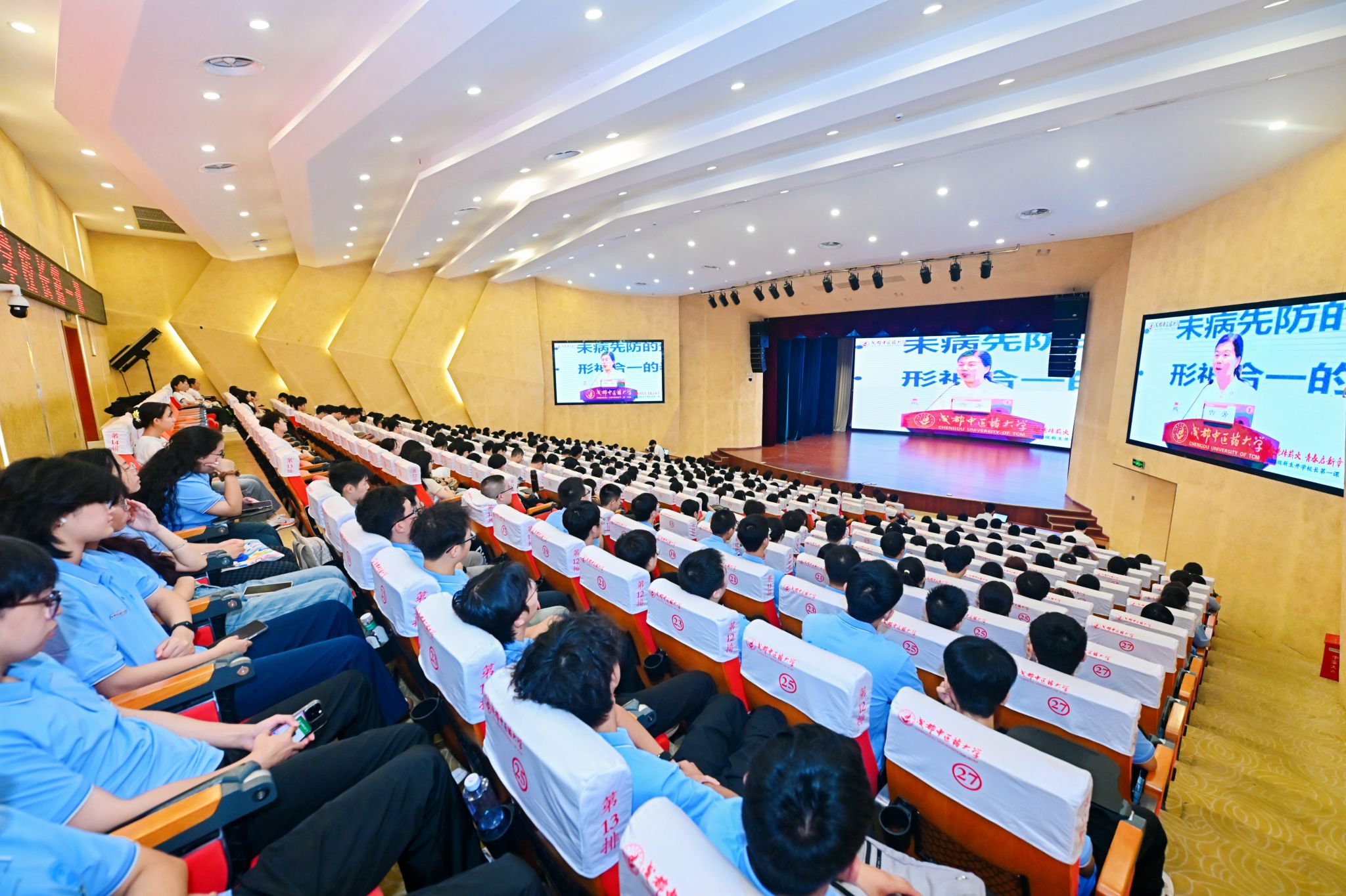 9 月 8 日上午,pp电子官方网站校长曾芳以 “岐黄传薪火 青春启新章” 为主题,为 2025 级全体新生讲授 “开学第一课”。