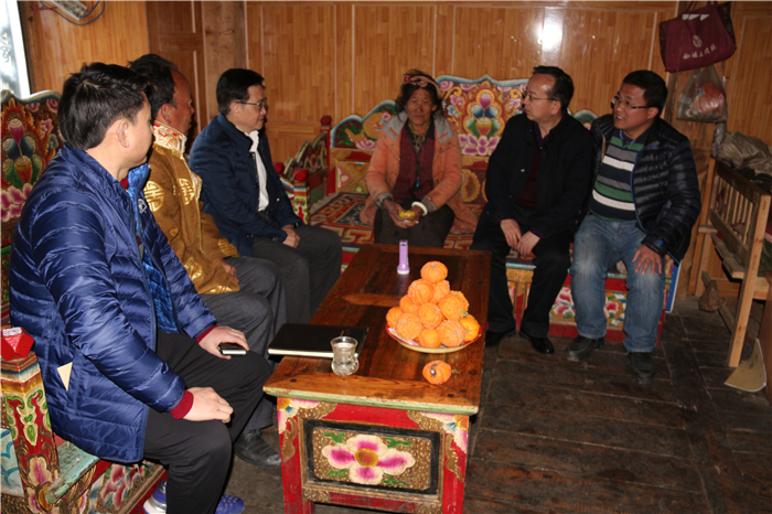 3月18日上午,刘毅一行一到得荣县就在杜靓、王张陪同下赴pp电子对口帮扶的俄木学村,与俄木学村村支书、村主任、驻村第一书记、驻村干部及其他干部、村民代表一道实地考察了该村的基础设施建设、生产生活情况,亲切看望贫困群众,深入由学校党委书记、校长“一对一”帮扶的重色曲措和郎吉校代拥忠两个贫困家庭,与户主重色曲措、郎吉校代拥忠亲切交谈,详细了解两个家庭的生产生活等情况,并送上慰问金。