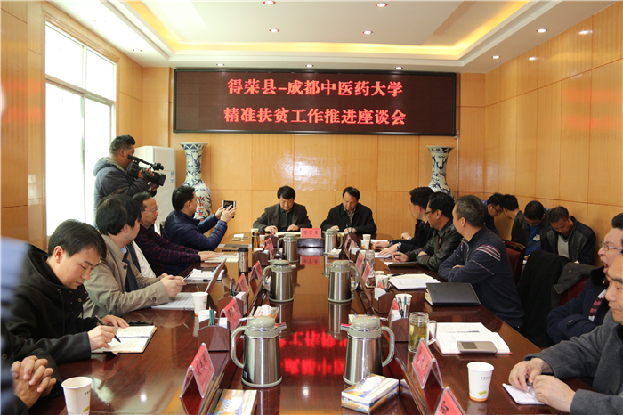 王礼均、吴先斌分别代表四川省中药饮片有限责任公司、成都地奥集团天府药业股份有限公司与得荣县环境保护与林业局副局长张勇签订得荣县花椒收购帮扶协议。签字仪式结束后,校、县双方就推进精准扶贫工作进行深入交流。
