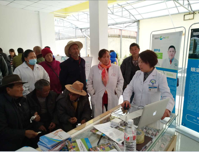 医疗队队员充克服各种困难,到达得荣县后立即开展“对口扶贫·精准复明”系列公益援助活动,针对常见眼病防治进行民众科普、视功能检测与眼病筛查、眼健康档案建立、医务人员培训等,充分发挥pp电子眼科学科和医疗资源优势,为当地人民群众提供专业优质的眼科医疗和眼健康服务,为今后pp电子联合当地政府和县人民医院定期开展“对口扶贫·精准复明”相关公益活动打下了坚实的基础。