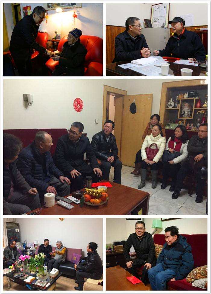 学校领导春节前夕看望老同志代表 发布时间:2017-01-18 15:01:00 浏览次数: 次 【字体:小 大】 春节前夕,学校党委书记刘毅、校长余曙光分别看望了龚锦文、郝计有、魏云祥、李作述、祝彼得、艾儒棣等老红军、老领导、老党员、知名专家代表,向老同志们致以亲切问候和新春祝福。 刘毅、余曙光每到一户老同志家中,都仔细询问老同志的生活状况和身体情况。希望老同志保重身体、安享晚年,并祝愿他们新春愉快、身体健康。刘毅、余曙光还叮嘱随行的离退休工作人员要热情做好老同志的服务工作,让他们愉快地度过晚年。 (文/徐倩 图/陈青 编辑/王其奇) 【打印正文】 上一条:学校领导春节前夕看望老同志代表 下一条:学校召开2016年度校级党员领导人员民主生活会